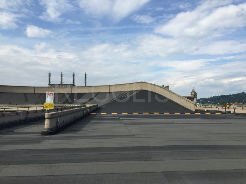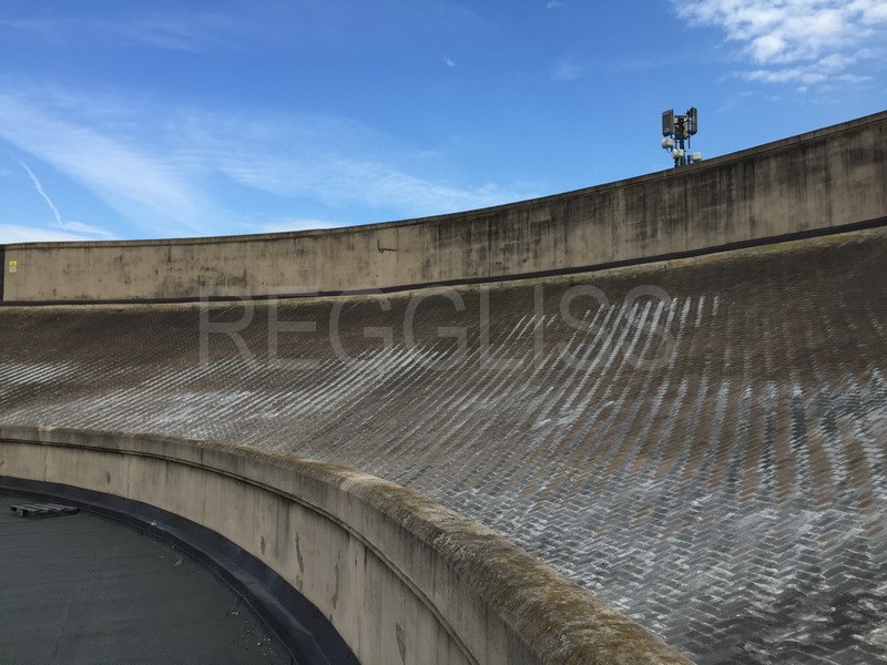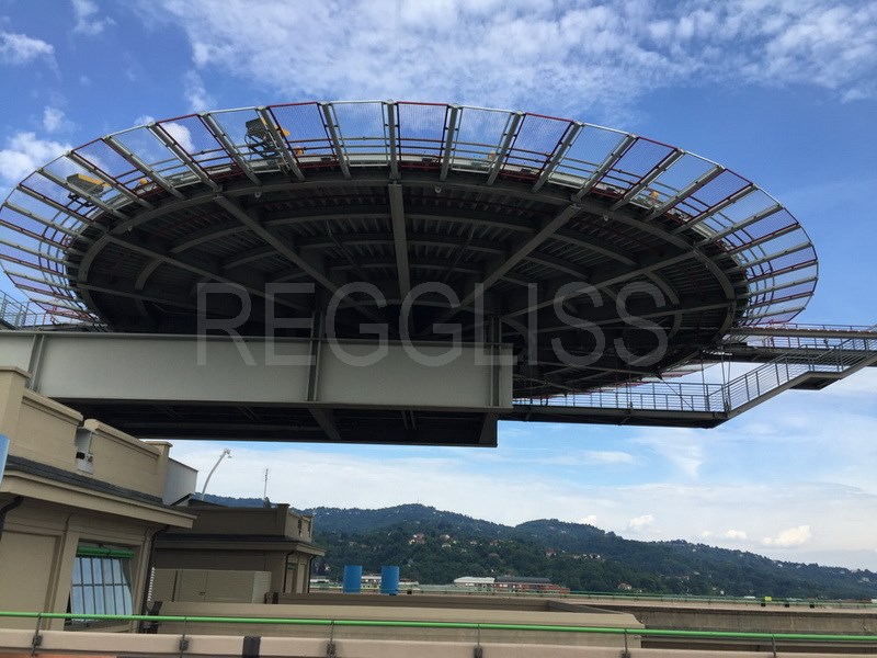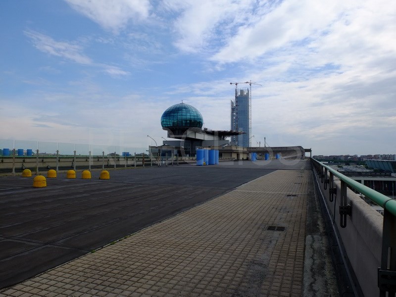 Une piste automobile au 5° étage d’un bâtiment! 1 km de piste avec 2 virages relevés. l’accès se fait pas 2 rampes hélicoïdales. Au milieu du bâtiment une piste d’hélicoptère et un bureau de verre.